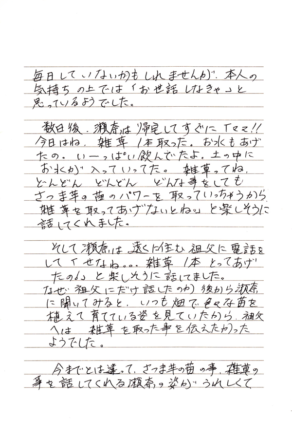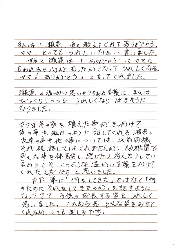 せなちゃんは、そのことを自分の言葉でお母さんに伝えてくれていたようです。
