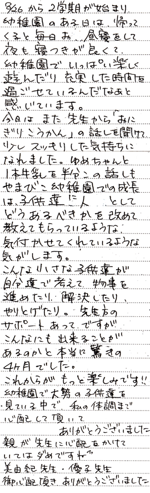 保護者から見たやまびこでの子供の育ち ― その3 ―