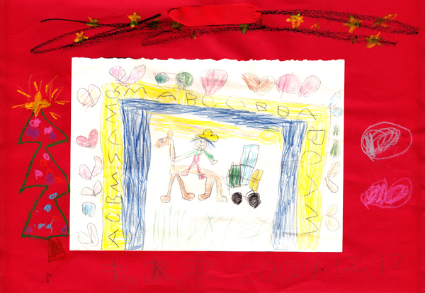 12月11日(金)自分のノートにカーボーイ風のさんた?が馬に乗り荷物を運んで行