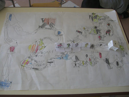 2便の降園バスを待つ時間奈穂が、「先生、お絵かきして遊ぼう。」と、声を掛けてきた。「じゃ、絵を描きながら双六を作っていかない?」と、話をすると「作る!!」と、元気な声が返ってきた。すると、近くにいた侑夏も「私もやりたい!!」と、声を掛けてきた。奈穂・侑夏が絵を描き双六の内容は、子どもたちと話し合って決めていくことにした。「できた!!」と、出来上がった双六を嬉しそうに手にとり、「先生、明日はサイコロを作るから紙を用意しておいてね。」と、言われた。