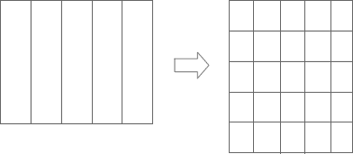 この作業を全ての蛇腹折りにした。そして、5列全てを5マスに区切り終わると、紙を広げなおして、折り目がついていたところを一本一本丁寧に線を引いていっていた。