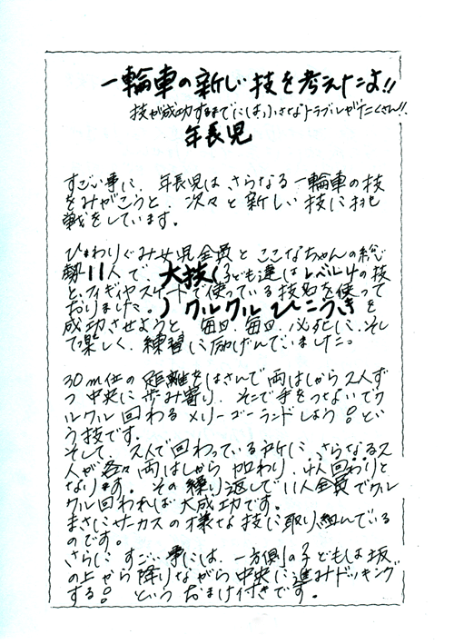 子ども達のありのままの姿を紙面で保護者の方に伝えています。