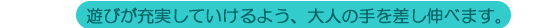 子どもが興味をもち、さらに力をつけようとしているときや、 また、困ったことが起きた時など、子どもが求めている事は何か?を 察して差し伸べる事が大切です。