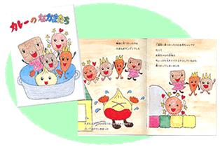 2004年のすみれ組で作成した「カレーのなかまたち」は、子ども達が考えたキャラクターとストーリーを保護者の方がまとめた絵本です。綺麗に印刷製本をして、大切な思い出になりました。